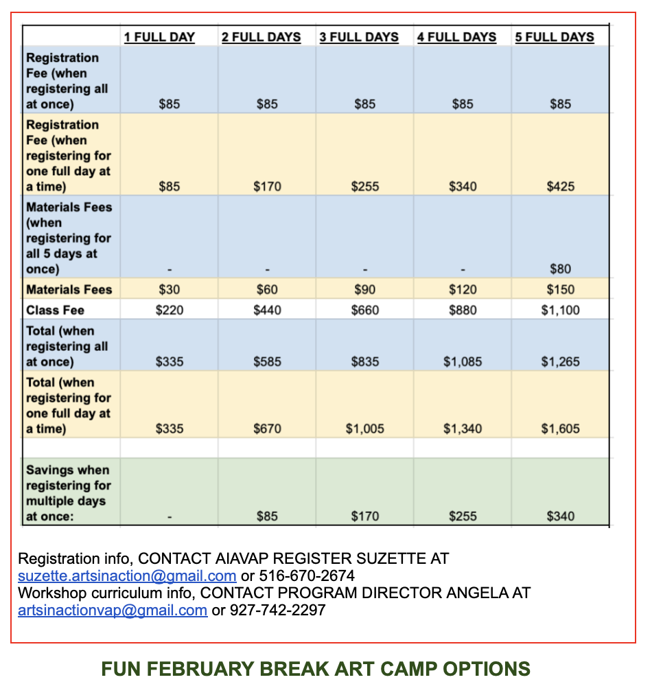 Arts in Action VAP is a non-profit organization. Your class fees are eligible for Flex Spending Accounts (FSA). To submit your class fees for reimbursement reach out to us for our EIN number.